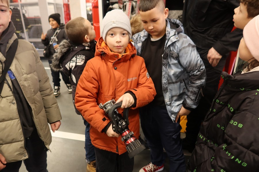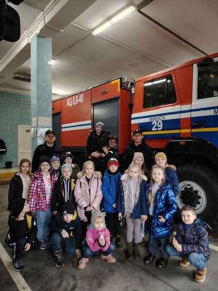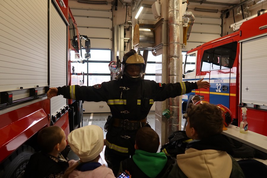 Далей для дзетак праходзіць экскурсія, падчас якой работнікі МНС праводзяць гасцей па памяшканнях пажарнай часці, расказваюць аб тэхніцы, якая стаіць у баявым разліку падраздзяленняў па надзвычайных сітуацыях, паказваюць аварыйна-выратавальнае абсталяванне і дазваляюць пасядзець у пажарнай машыне.
