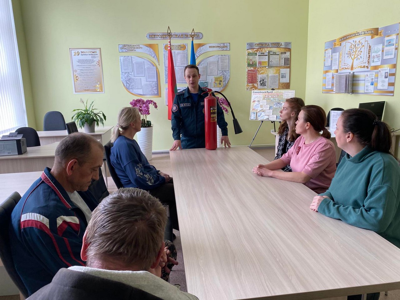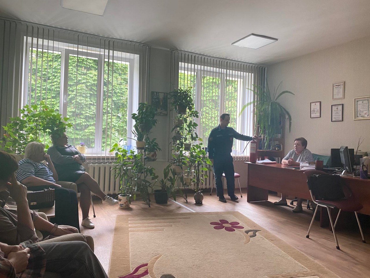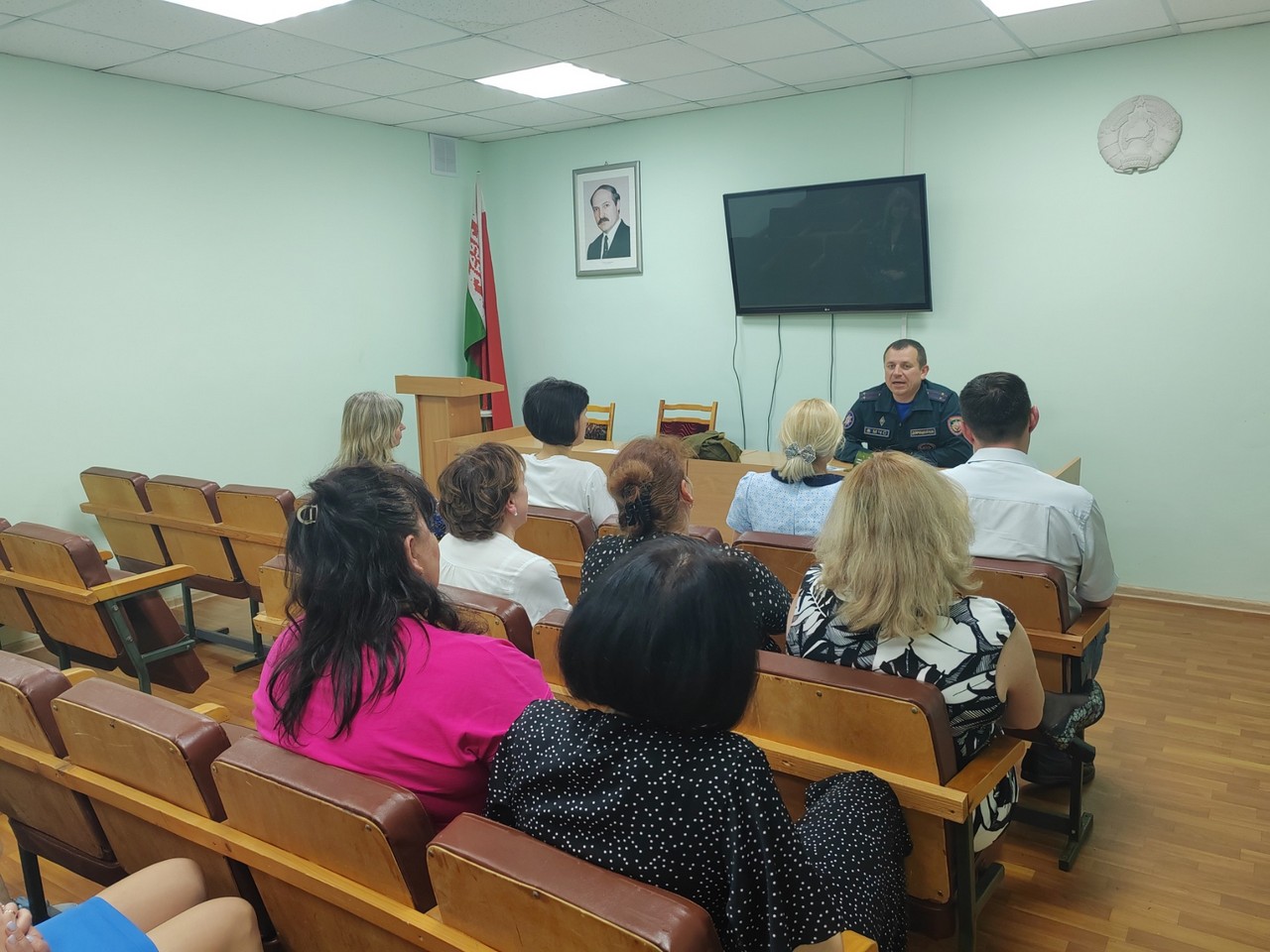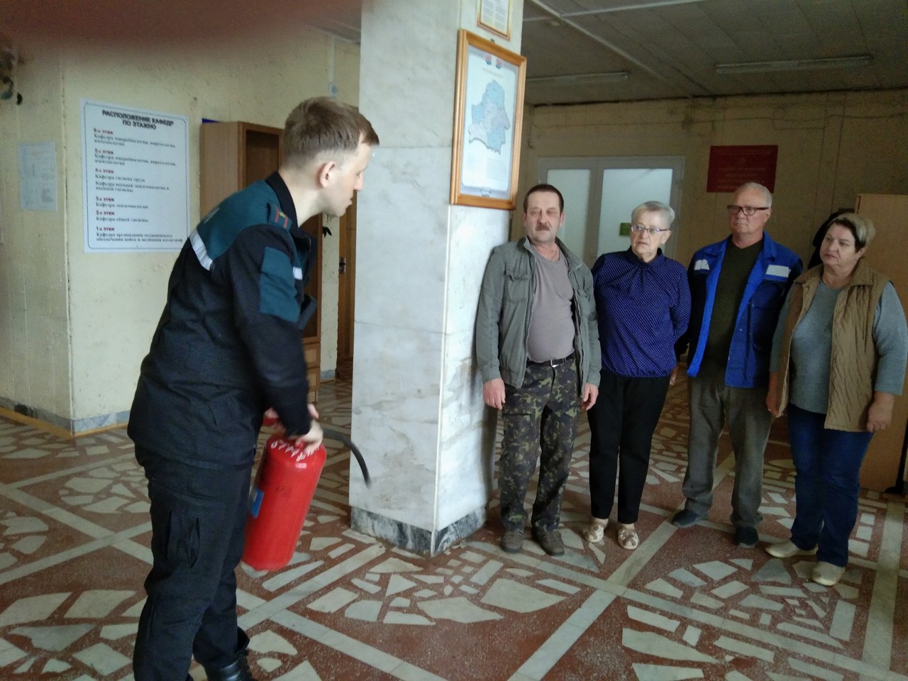 Падчас гутарак работнікі Кастрычніцкага раённага аддзела па надзвычайных сітуацыях даводзяць прысутным аператыўную абстаноўку аб колькасці пажараў і надзвычайных сітуацый, выратаваных і загінуўшых з пачатку 2025 года. Ратавальнікі нагадваюць асноўныя правілы бяспекі пры эксплуатацыі электраабсталявання, расказваюць аб важнасці ўстаноўкі ў жылых памяшканнях аўтаномных пажарных апавяшчальнікаў, падрабязна асвятляюць дзеянні ў выпадку ўзнікнення пажару на рабочым месцы і ў быце, а таксама алгарытм выкарыстання першасных сродкаў пажаратушэння.
