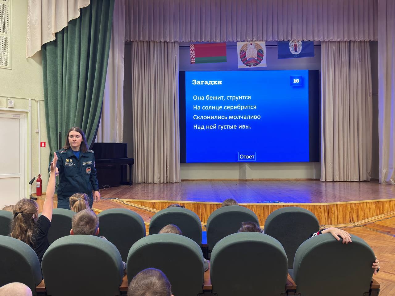 У пачатку мерапрыемстваў хлопцы разам і работнікамі МНС паўтараюць правілы бяспечных паводзін у летні перыяд. Далей з дапамогай інтэлектуальнай віктарыны «Свая гульня» дзеткі адгадваюць загадкі, адказваюць на каверзныя пытанні віктарыны, вывучаюць знакі бяспекі на вадаёмах, а таксама паўтараюць тэлефоны экстраных службаў. Для замацавання атрыманых ведаў дзецям дэманструюць мультфільм МНС «Спецатрад 112».