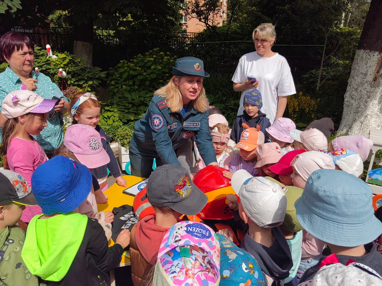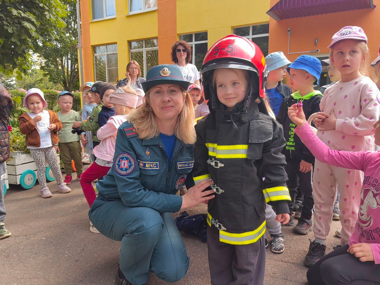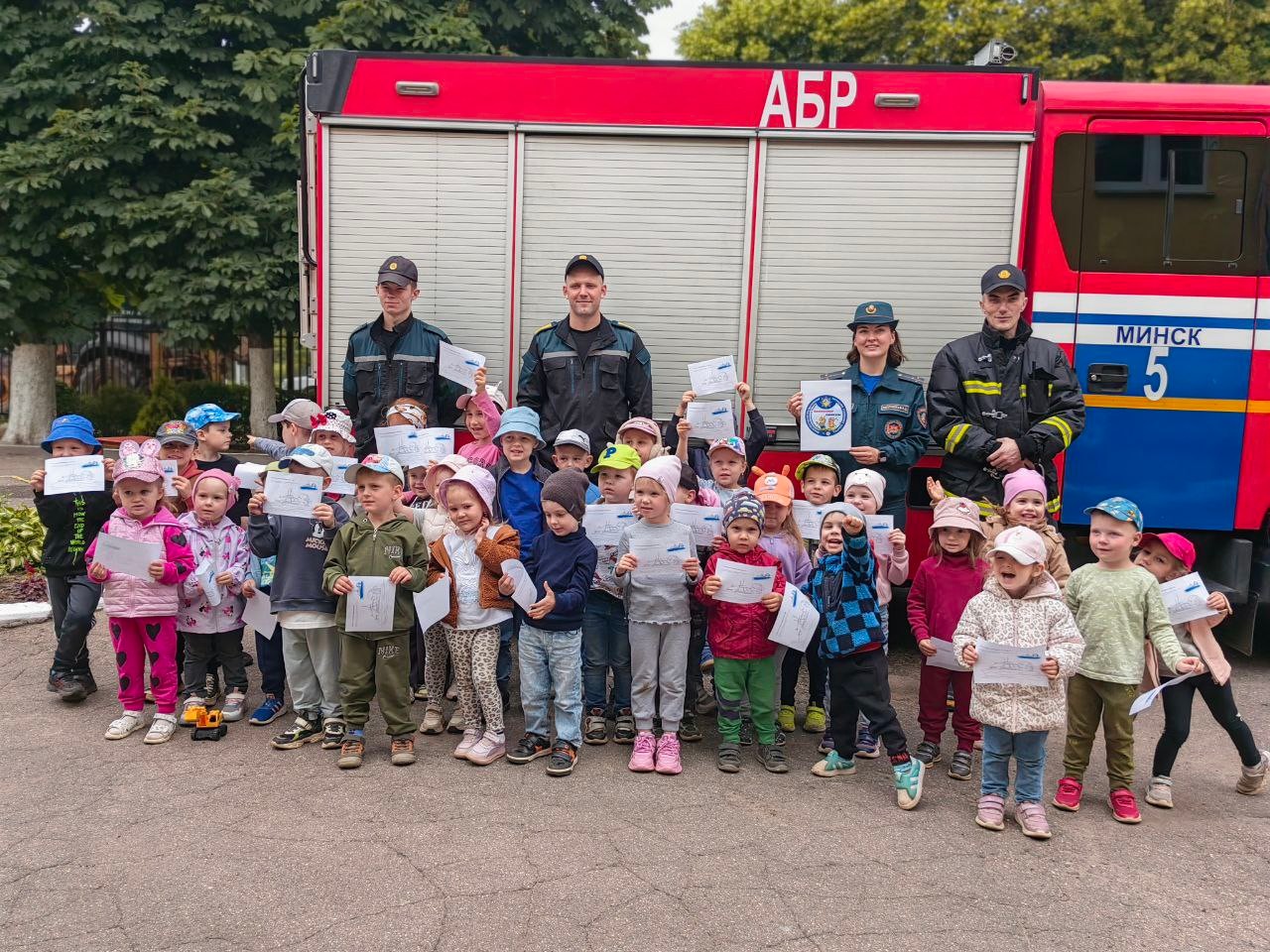 Але цэнтрам увагі малышоў стала сапраўдная пажарная машына. Дзеці пазнаёміліся з абсталяваннем спецыяльнага аўтамабіля, даведаліся якія інструменты для якіх выратавальных работ прызначаны, змаглі не толькі пакратаць, але і прымяраць баявое адзенне і каску ратавальніка.