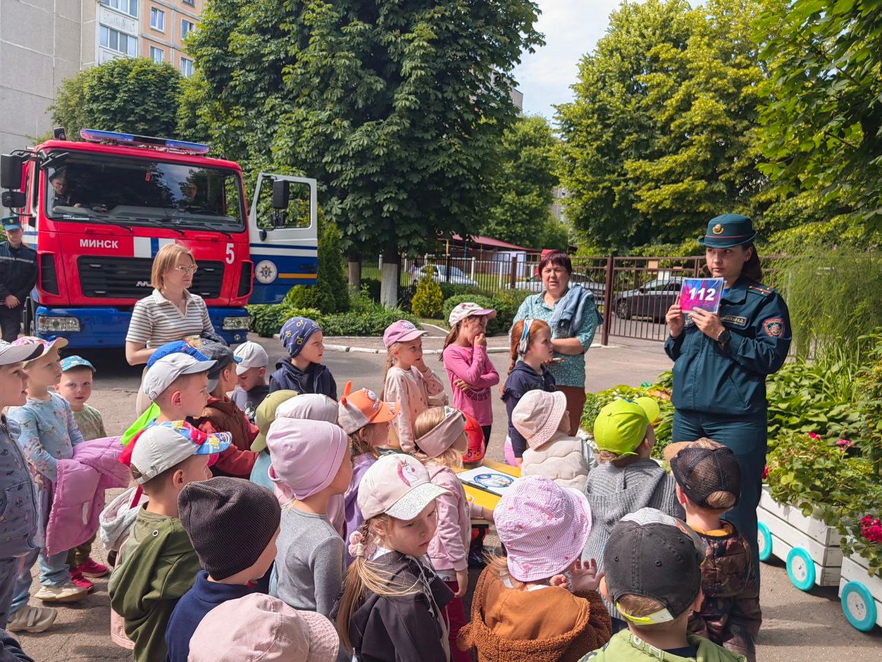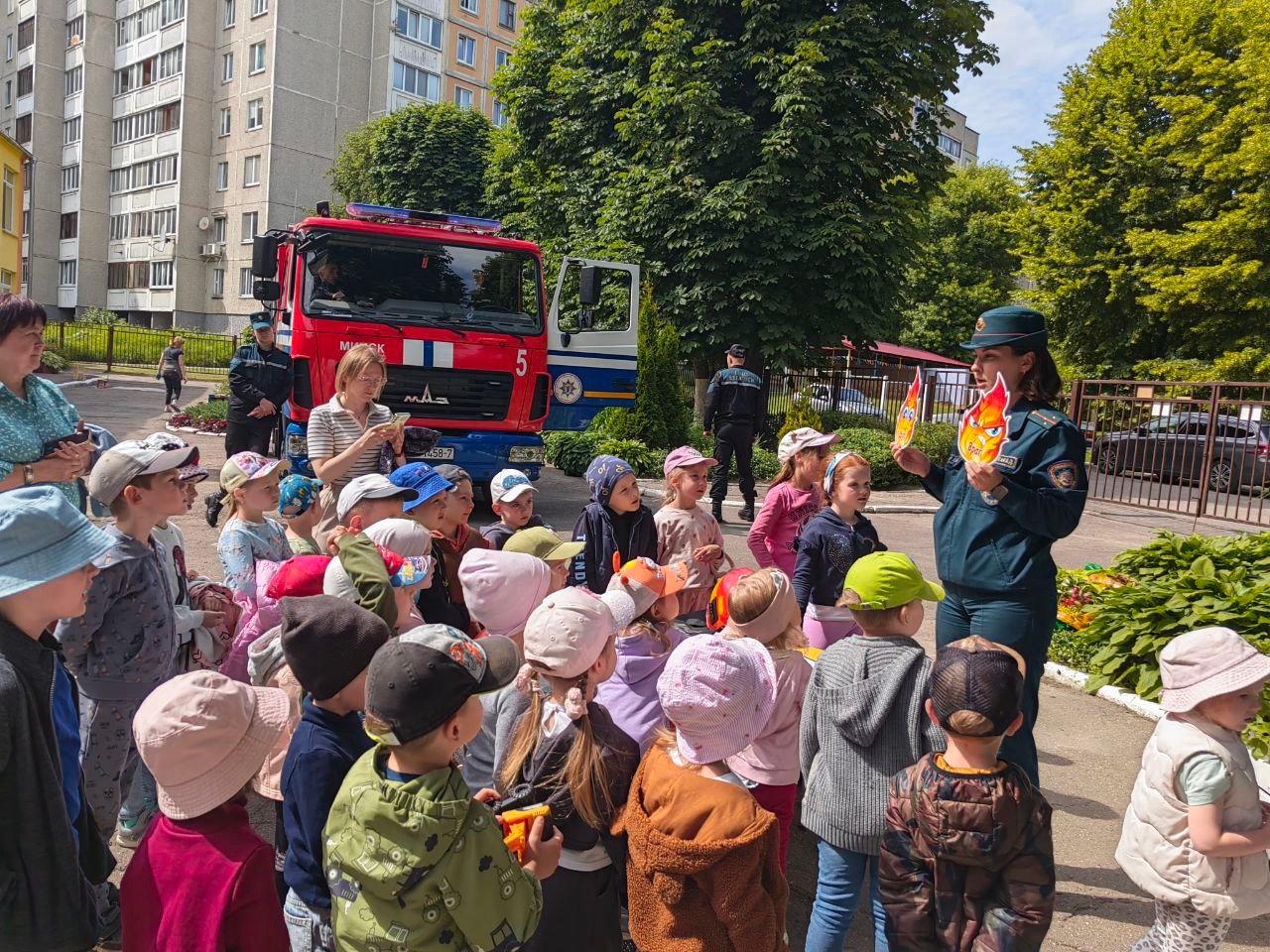 Пад эгідай рэспубліканскай акцыі "Бяспечныя канікулы" Кастрычніцкія ратавальнікі зазірнулі ў госці да выхаванцаў дзіцячага сада №131.