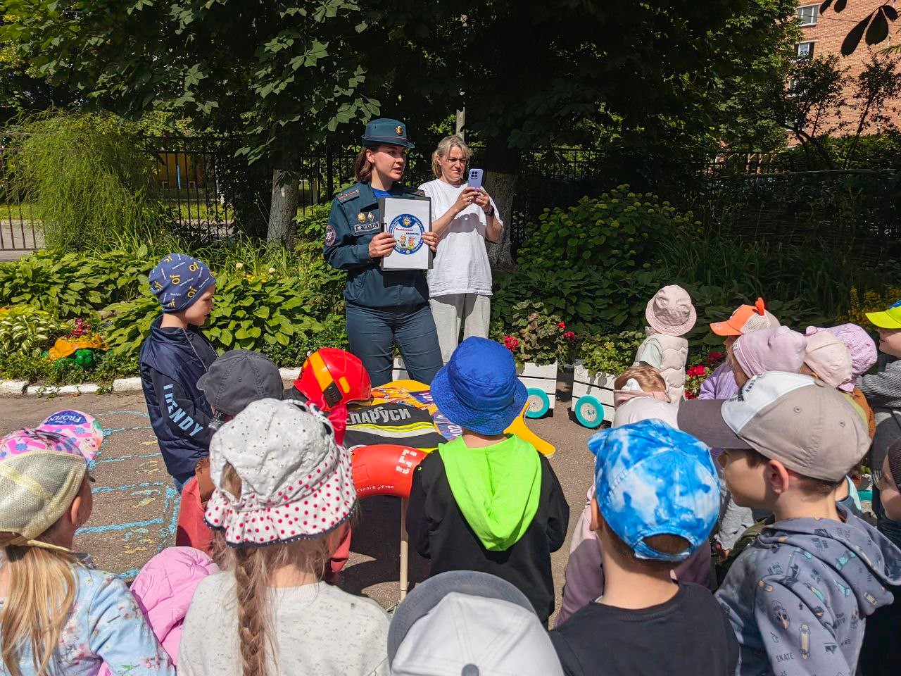 Разам з інспектарам малыя паўтарылі нумары службы выратавання "101" і "112", правілы паводзін у выпадку ўзнікнення пажару і дзеяння пры іншых надзвычайных сітуацыях, вызначылі небяспечныя месцы і прадметы ў кватэры і даведаліся з чым можна гуляць, а з чым не варта.