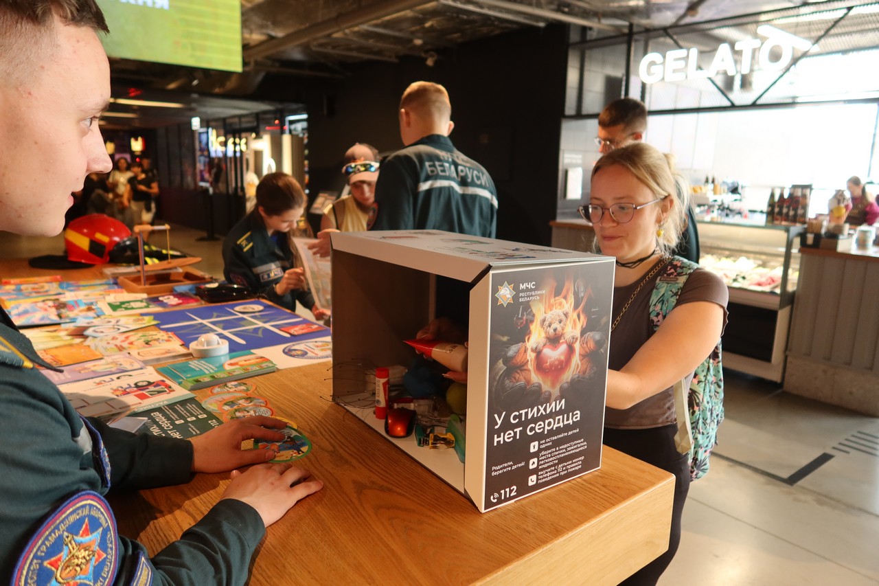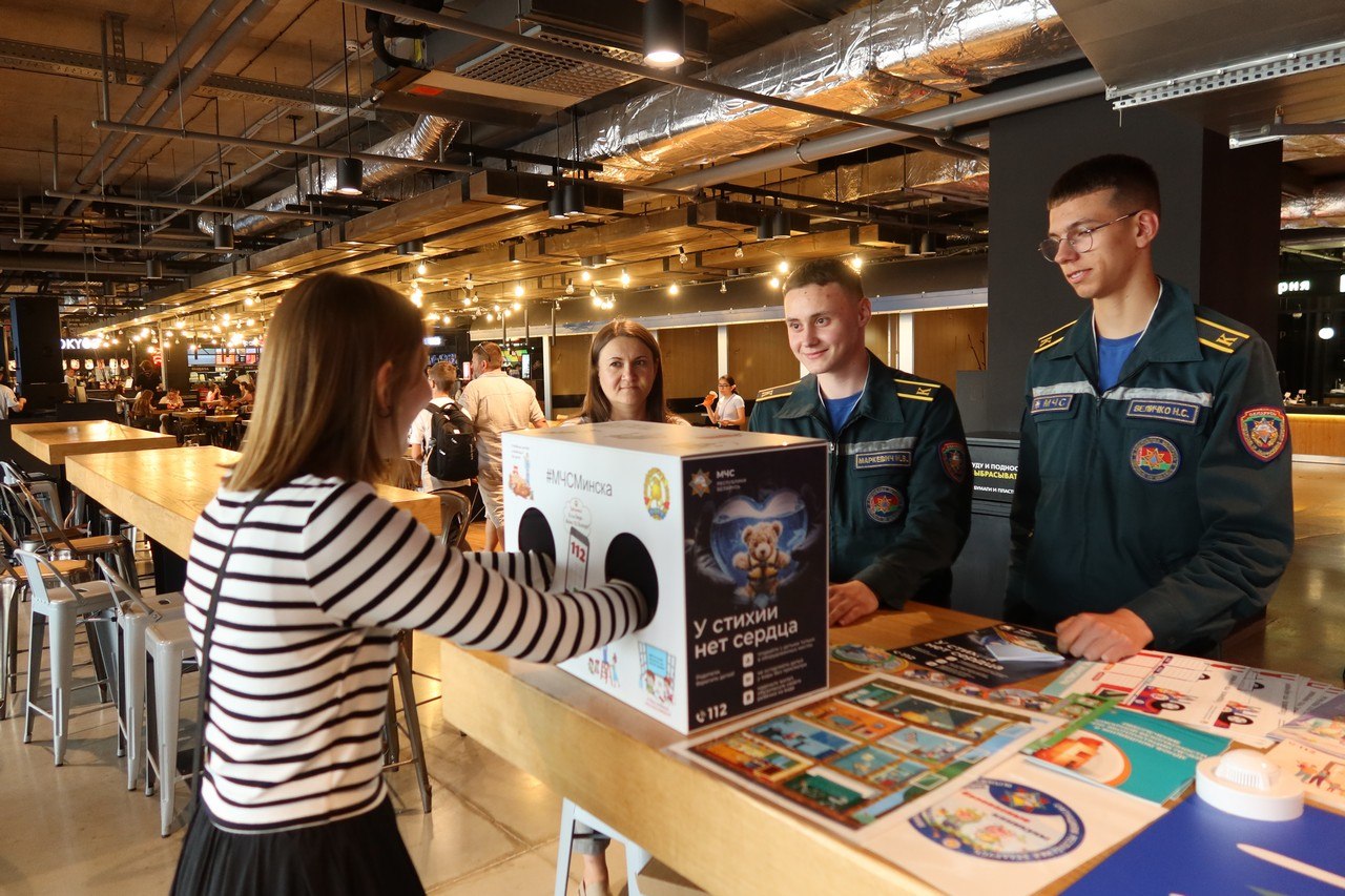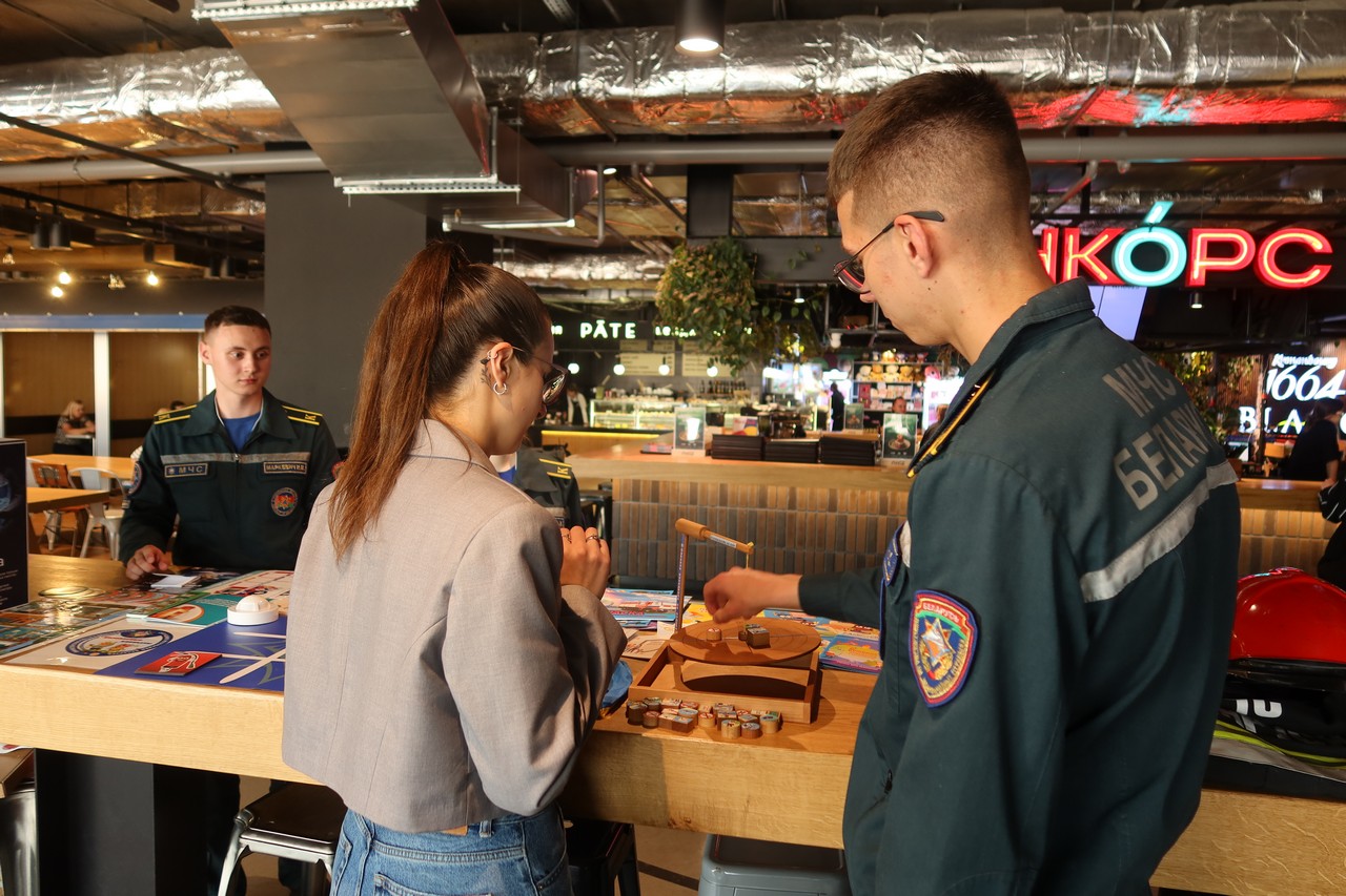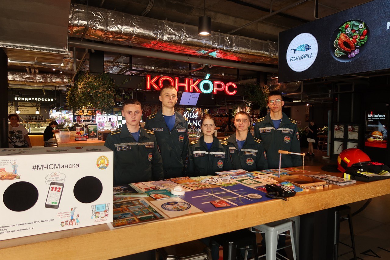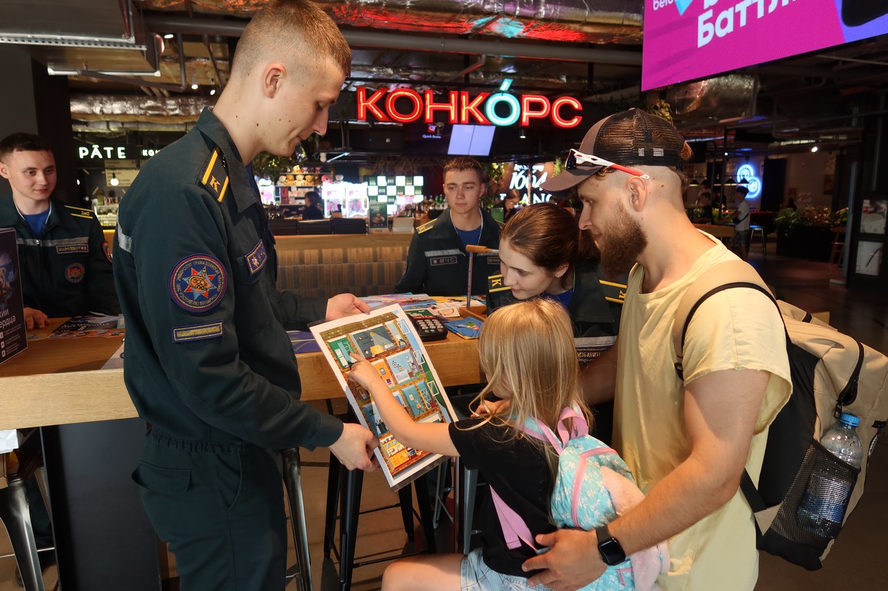 В рамках республиканской акции «Безопасные каникулы» работники Октябрьского районного отдела по чрезвычайным ситуациям совместно с курсантами 1-го курса Университета гражданской защиты МЧС провели профилактическое мероприятие по безопасности для детей и их родителей в ТРЦ «Галилео».