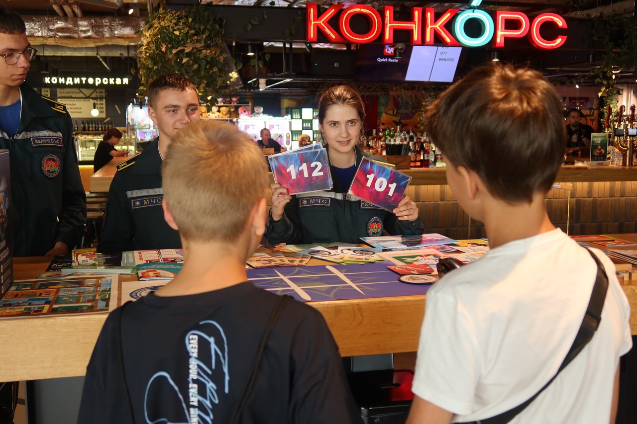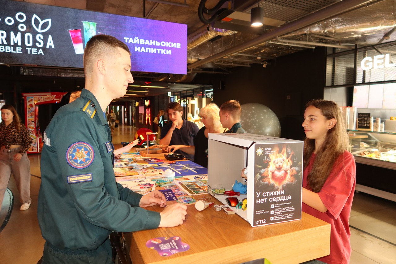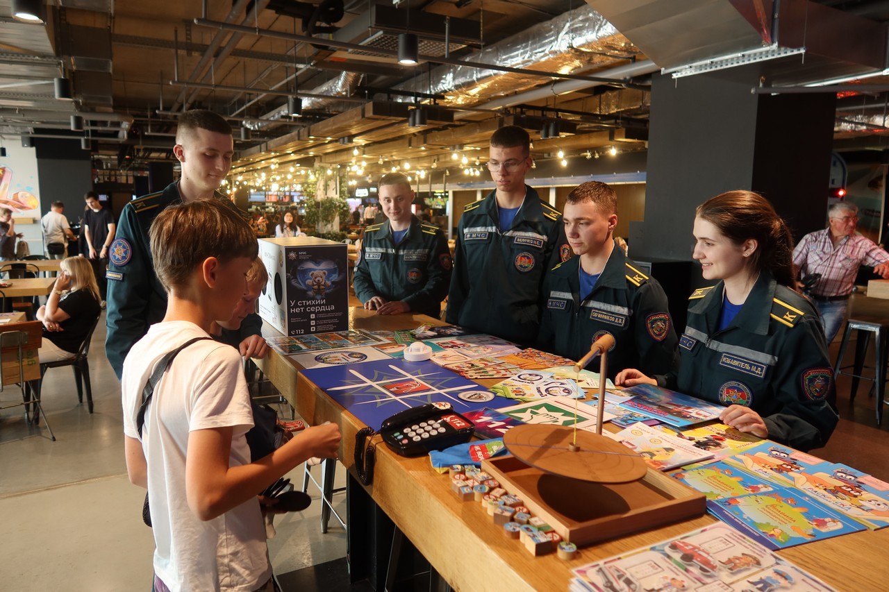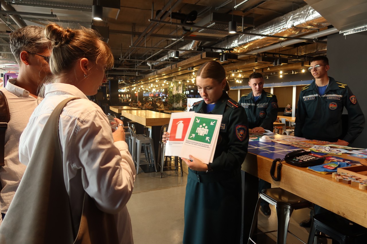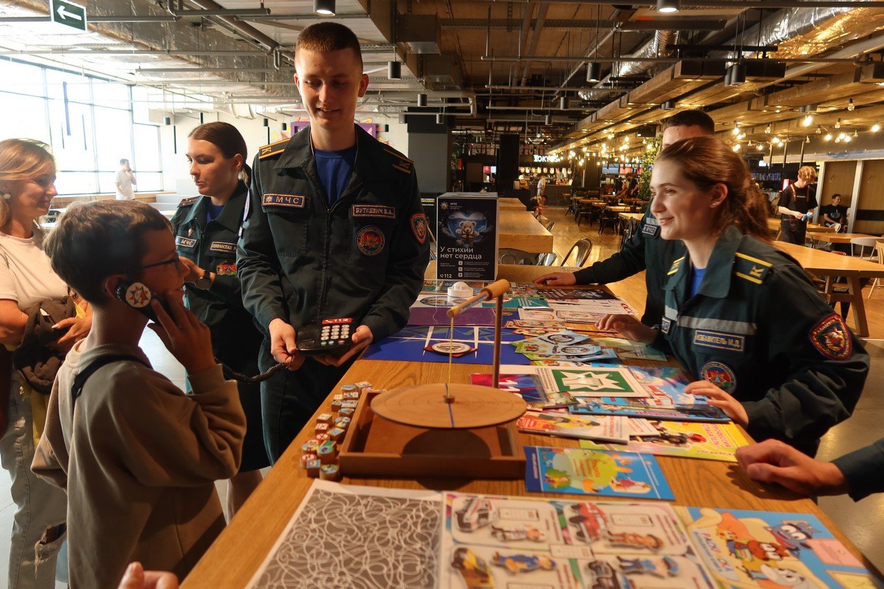 На интерактивной точке МЧС в фудмолле «Конкорс» посетителям торгового центра предложили освежить знания в области безопасности, поучаствовав в викторинах и интеллектуальных играх.