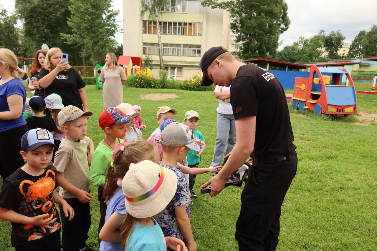 У пачатку мерапрыемства малышы разам з інспектарам МНС паўтарылі правілы бяспечных паводзін у летні перыяд, у прыватнасці пры знаходжанні ля вадаёмаў, вызначылі небяспечныя месцы і прадметы ў кватэры, даведаліся, з чым можна і нельга гуляць, і замацавалі нумары тэлефонаў экстраных службаў.