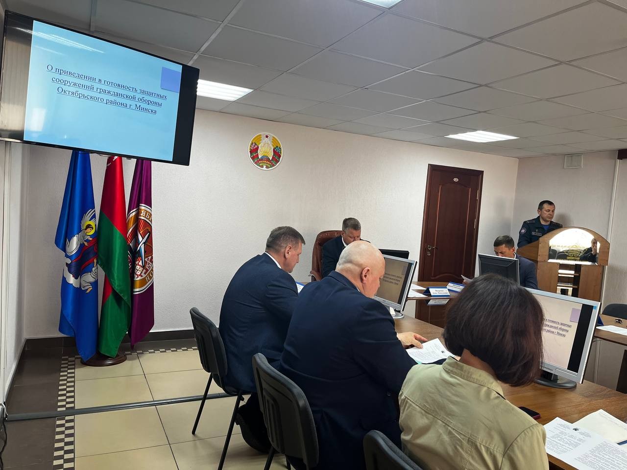 Председатель комиссии заслушал с докладом работников Октябрьского районного отдела по чрезвычайным ситуациям о состоянии защитных объектов и потребовал от заинтересованных неукоснительного соблюдения законодательства в части поддержания готовности сооружений гражданской обороны, принятия всех необходимых мер по приведению их в соответствие в максимально короткие сроки, напомнил об ответственности лиц, отвечающих за их состояние, а также непосредственно руководителей.