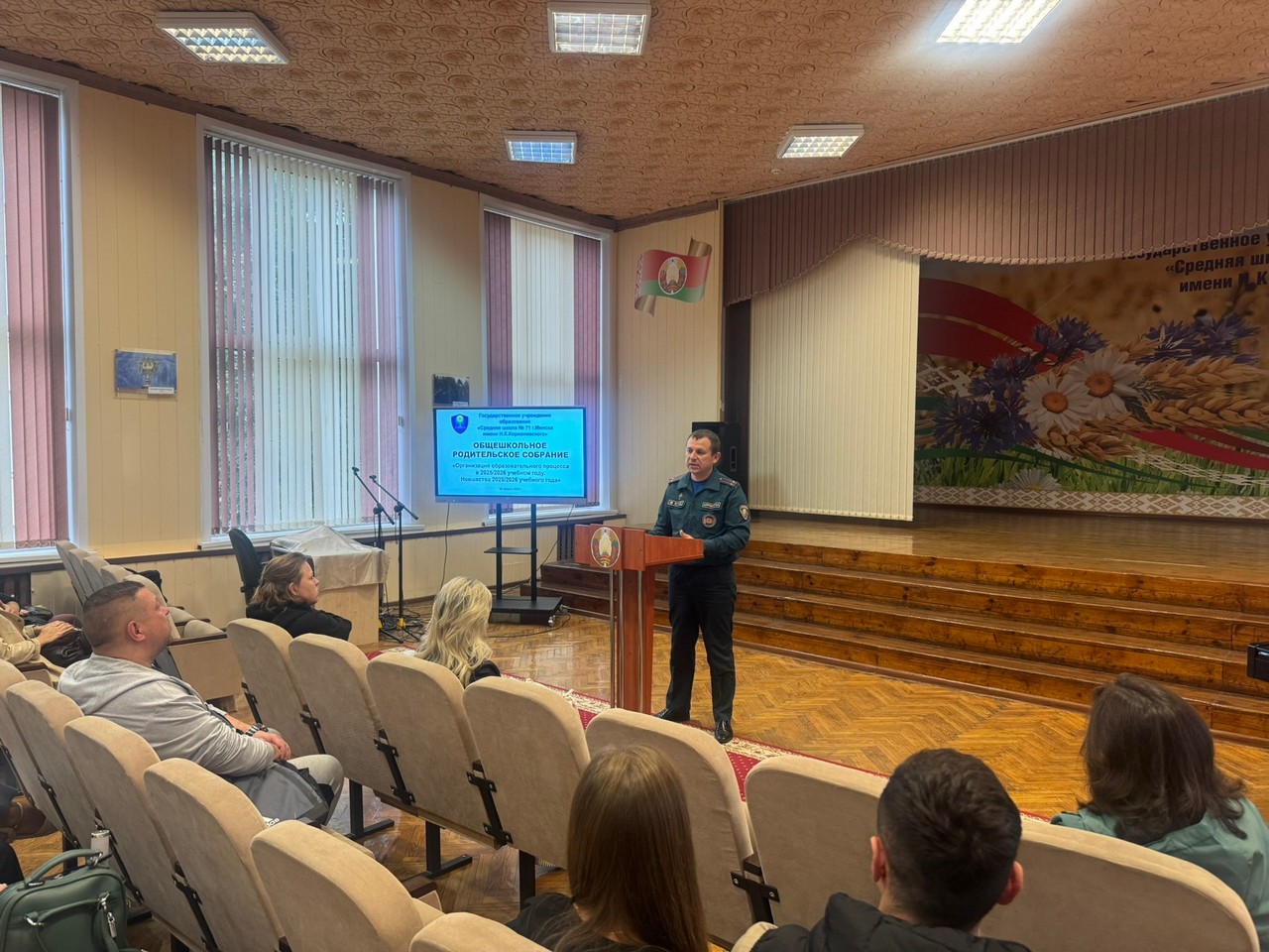 В рамках республиканской акции «Безопасные каникулы» работники Октябрьского районного отдела по чрезвычайным ситуациям приняли участие в общешкольных родительских собраниях.