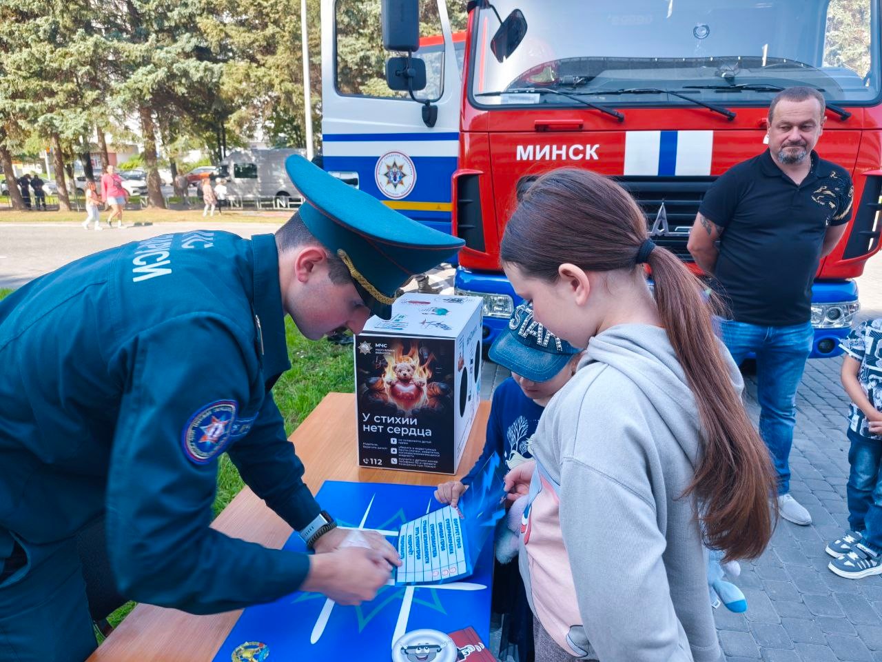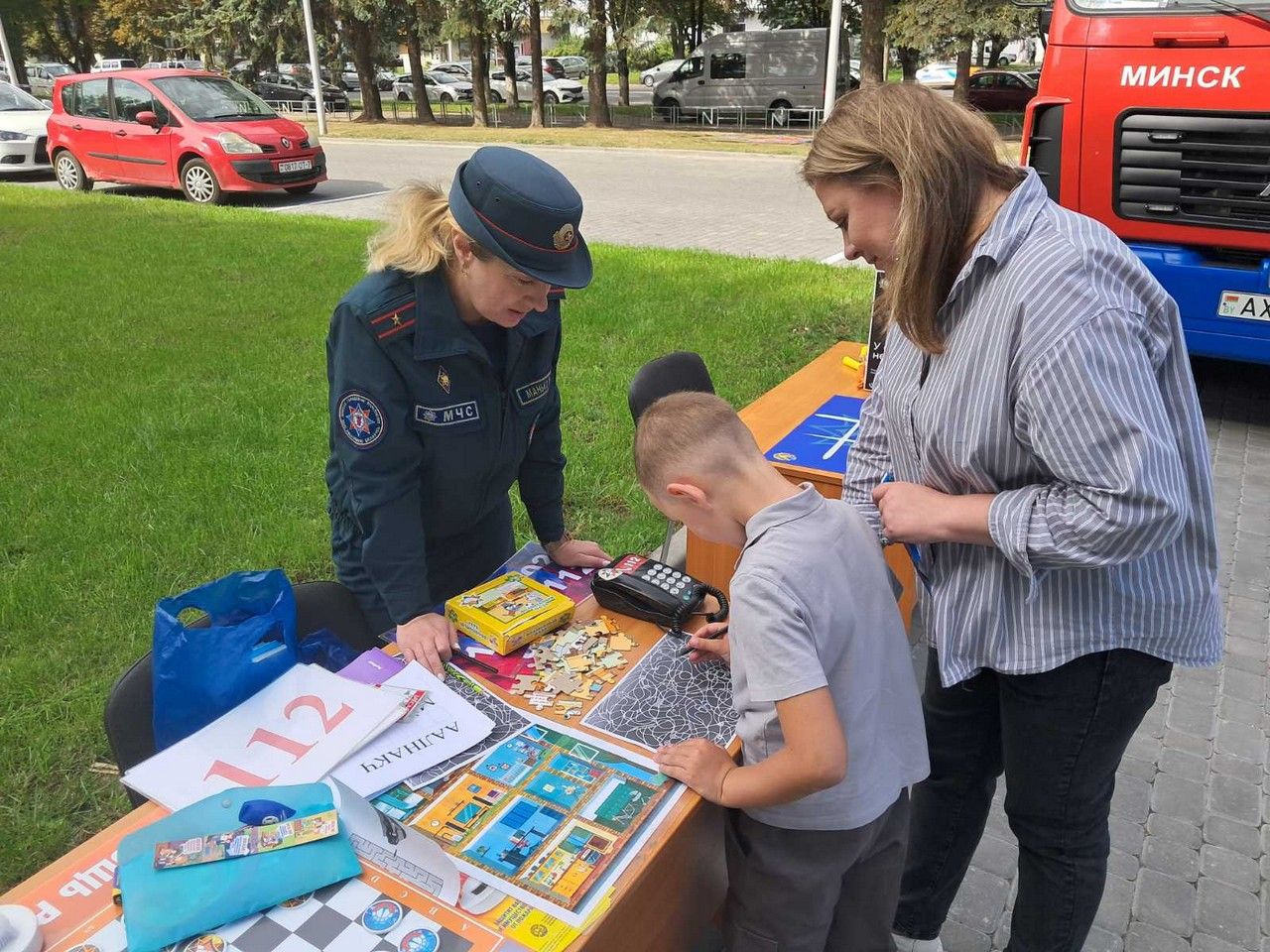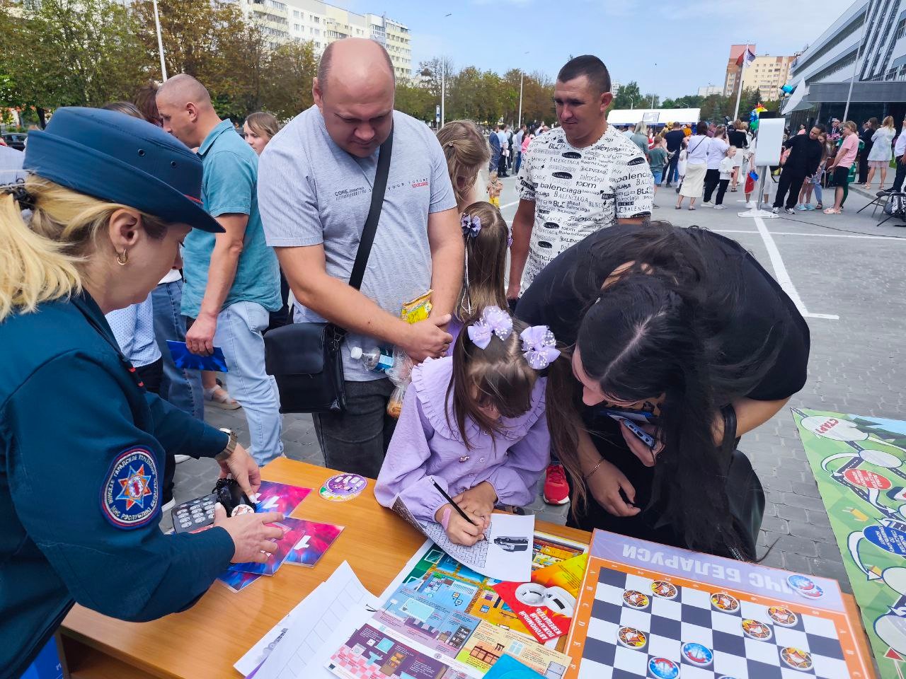 В рамках республиканской акции «Безопасные каникулы» на открытой площадке ОАО «Интеграл» работники Октябрьского районного отдела по чрезвычайным ситуациям приняли участие в праздничном мероприятии, посвященном Дню знаний.