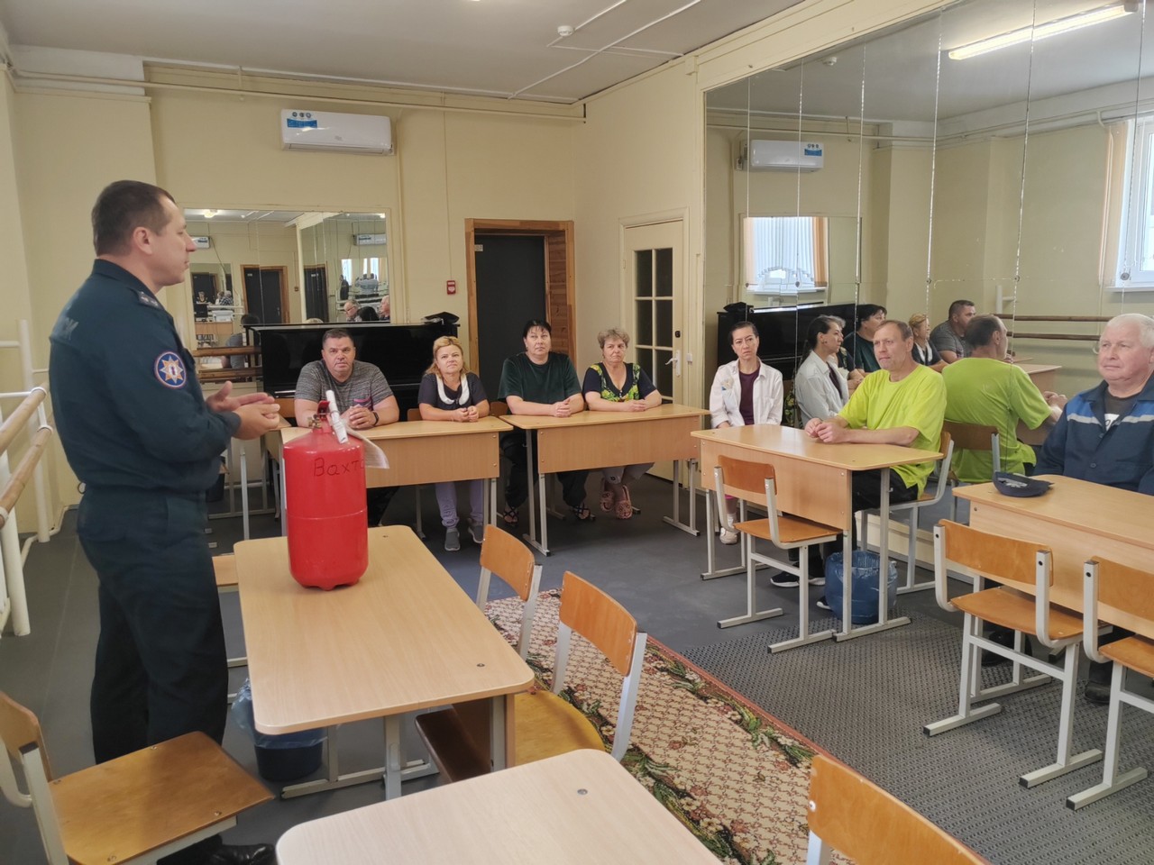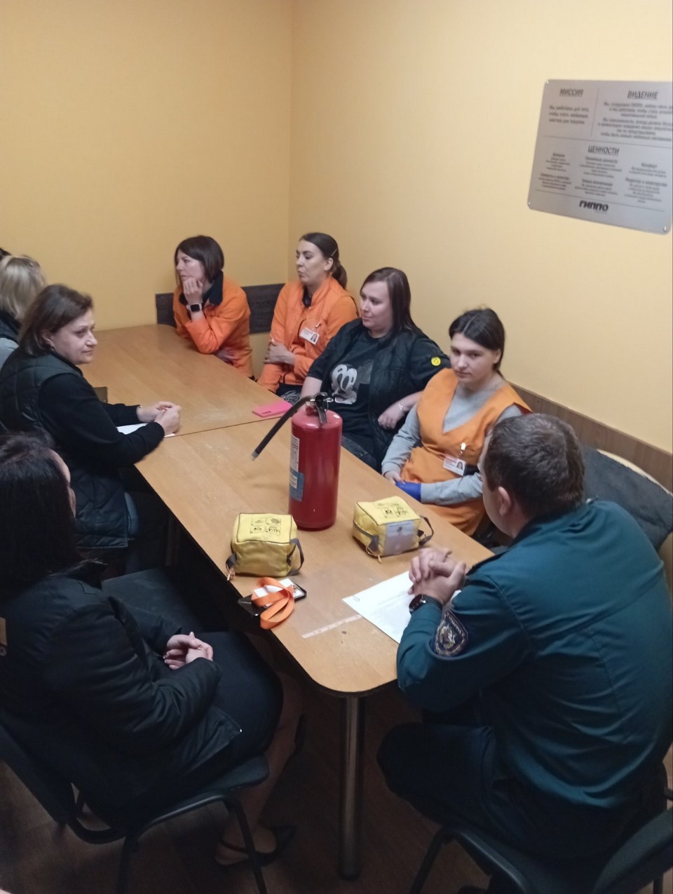 В ходе бесед сотрудники Октябрьского районного отдела по чрезвычайным ситуациям доводят присутствующим оперативную обстановку о количестве пожаров и чрезвычайных ситуаций, о количестве спасённых и погибших с начала года. Спасатели напоминают об основных правилах безопасности при работе с электрооборудованием, рассказывают о важности установки автономных пожарных извещателей в жилых помещениях, подробно рассказывают о действиях при возникновении пожара на производстве и в быту, а также об алгоритме применения первичных средств пожаротушения.