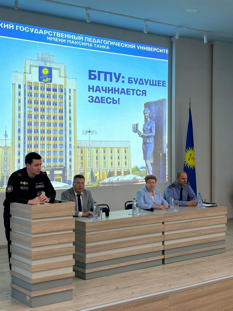 У Кастрычніцкім раёне работнікі МНС сустрэліся з навучэнцамі i педагогамi Беларускага дзяржаўнага педагагiчнага ўніверсітэта iмя М.Танка.