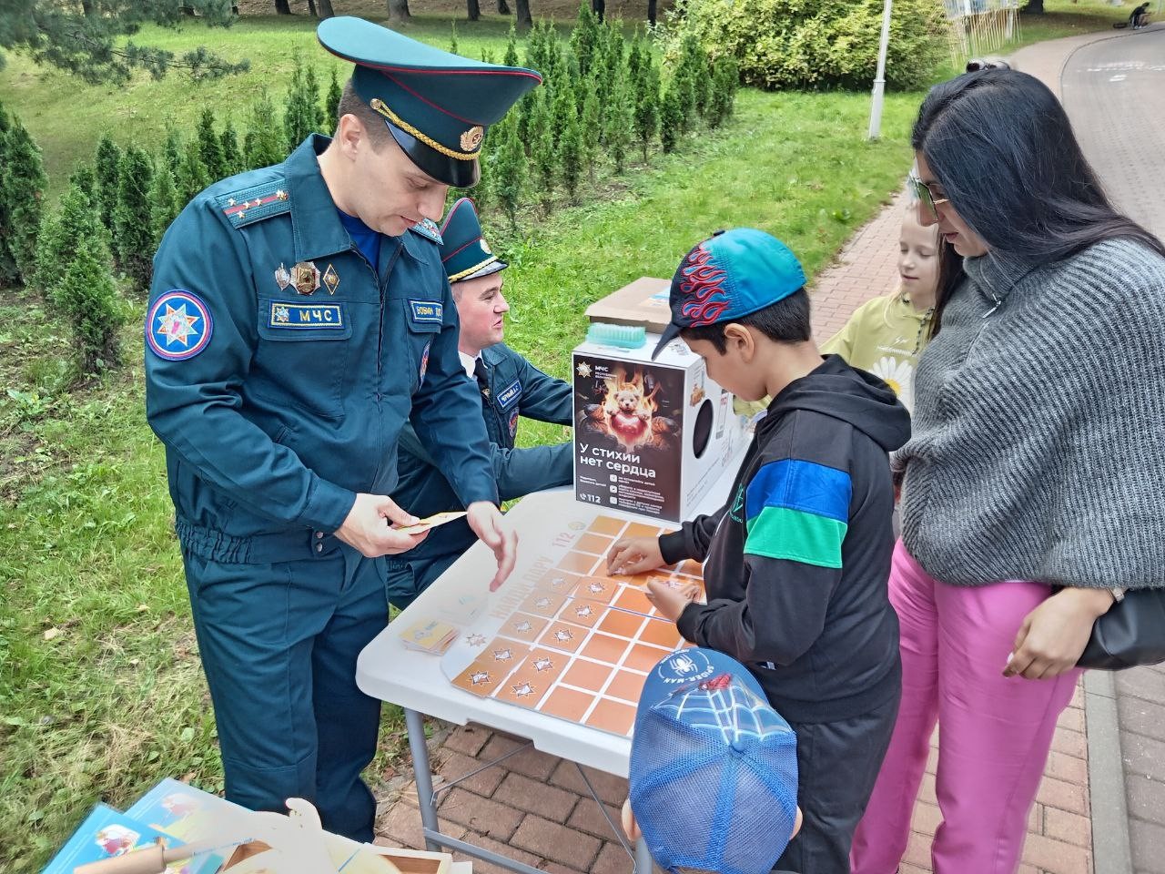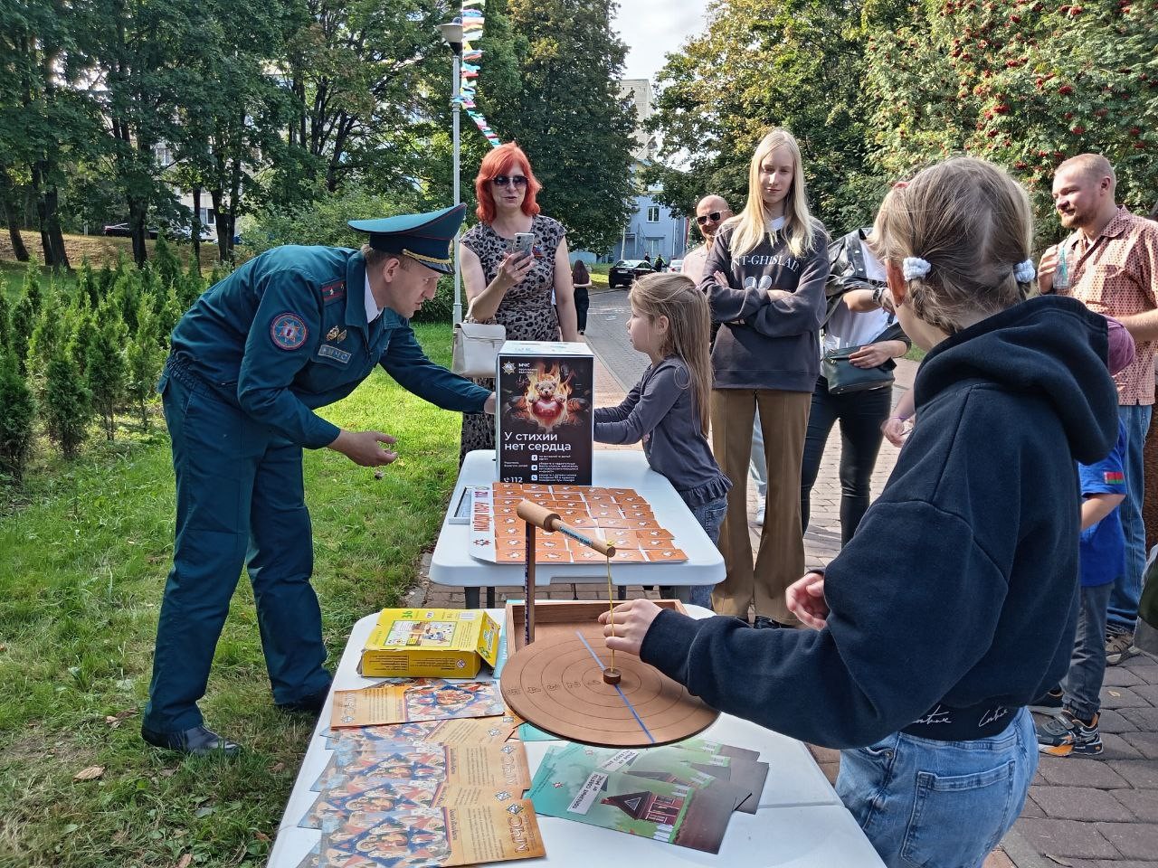 Ратавальнікі і міліцыянеры падрыхтавалі для жыхароў раёна «астраўкі бяспекі», на якіх можна было даведацца ўсё пра бяспеку. Дарослыя і дзеці з задавальненнем бралі ўдзел у конкурсах і віктарынах, вырашалі рэбусы і галаваломкі. Усе жадаючыя з цікавасцю знаёміліся са спецыяльнай тэхнікай і абсталяваннем экстраных службаў, а таксама прымяралі баявое адзенне пажарных і супрацоўнікаў міліцыі.
