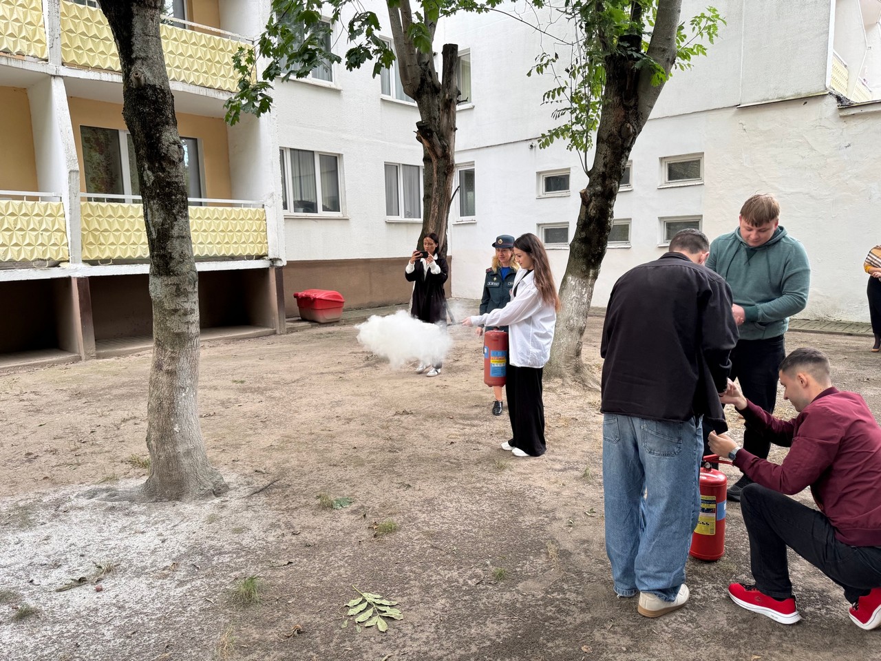 Падчас сустрэч прадстаўнікі МНС у чарговы раз нагадалі моладзі аб прычынах узнікнення пажараў і спосабах іх прадухілення, аб правілах паводзін пры ўзнікненні розных надзвычайных сітуацый, аб асноўных правілах бяспечнай эвакуацыі, звярнулі ўвагу на знакі пажарнай бяспекі, а таксама праверылі веды студэнтаў па правілах карыстання вогнетушыцелем, практычна адпрацавалі яго прымяненне.