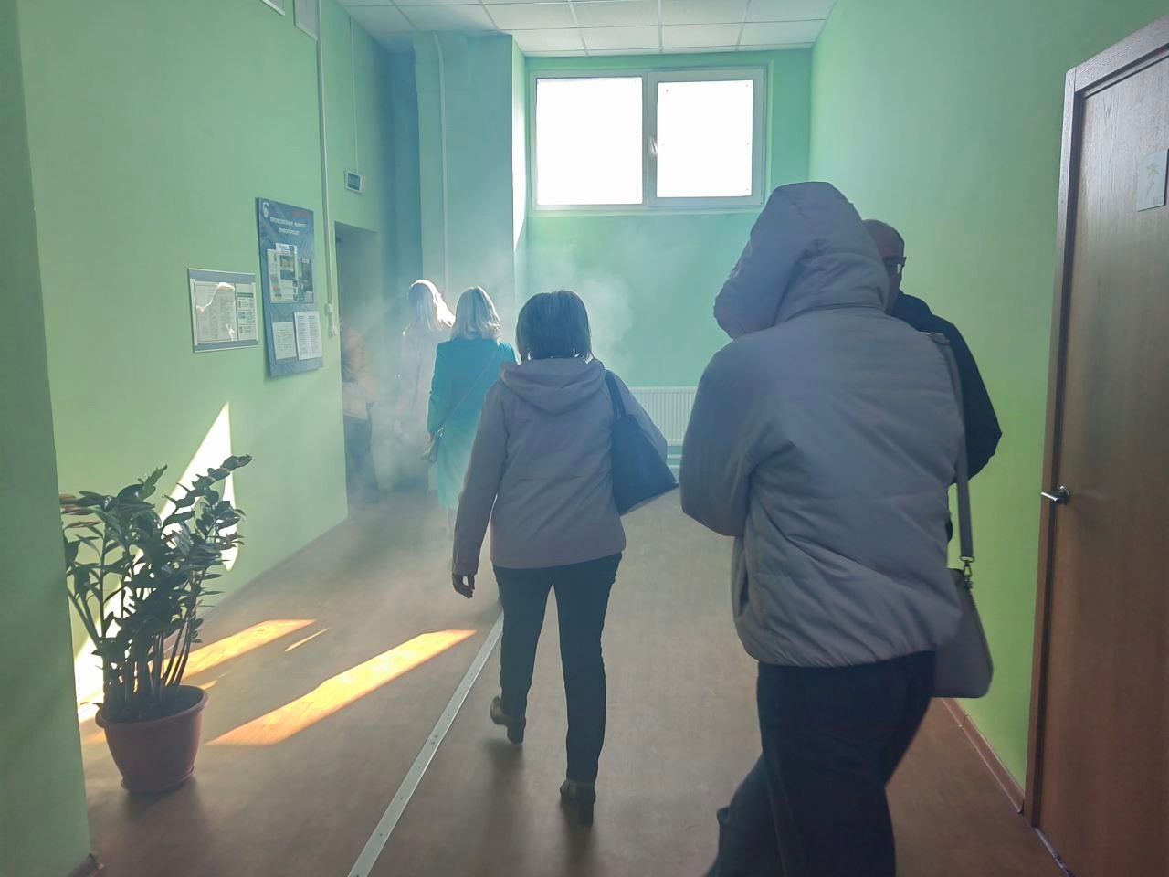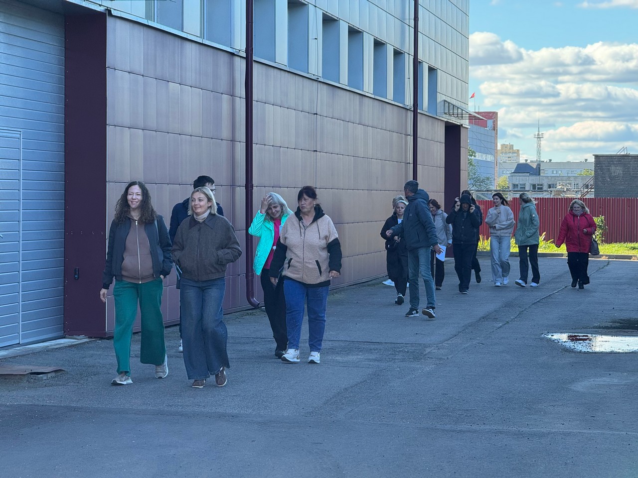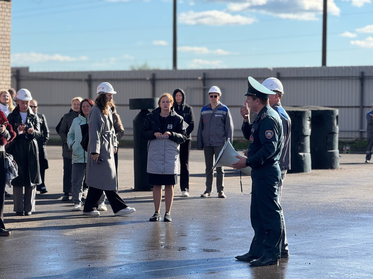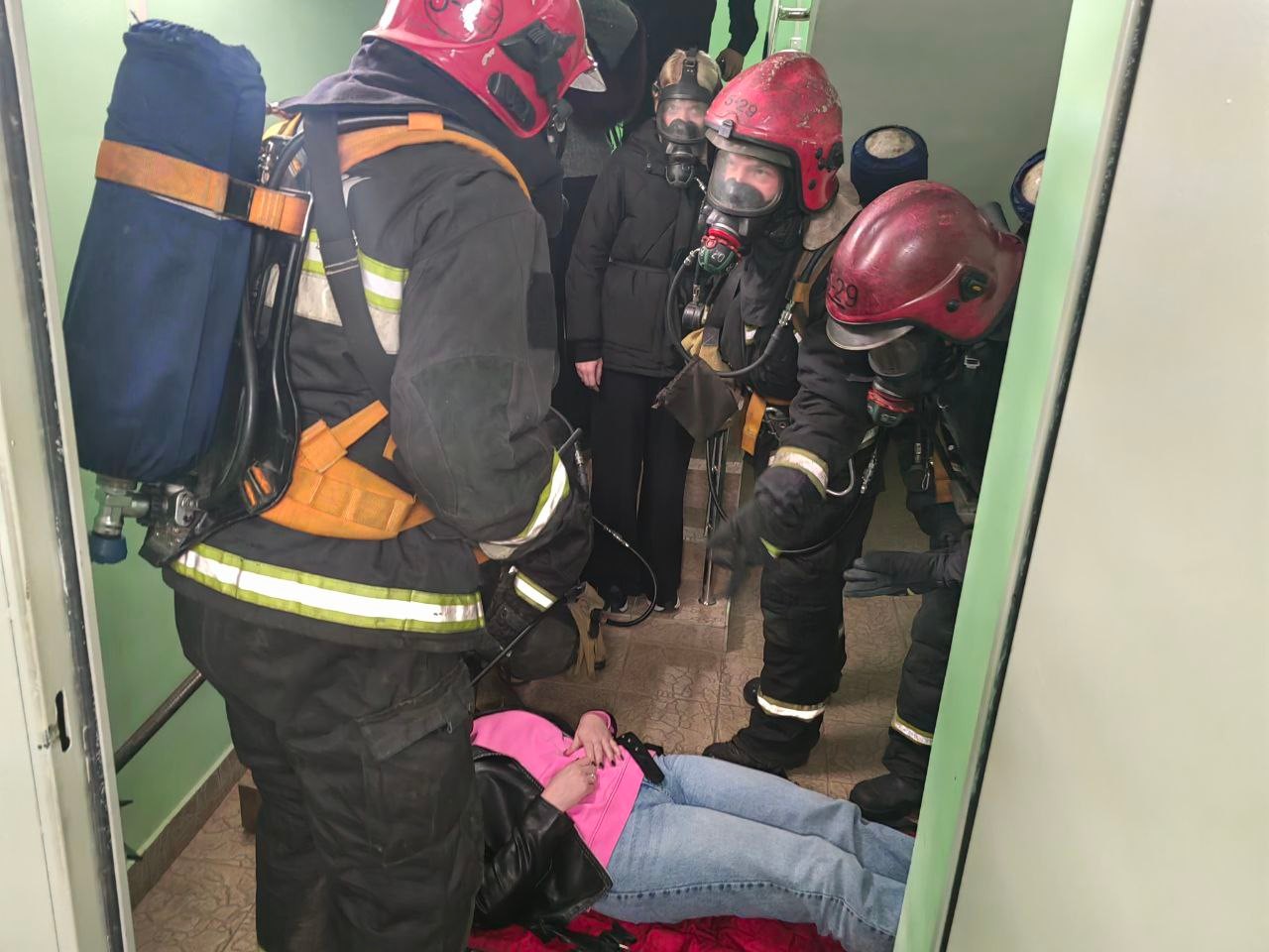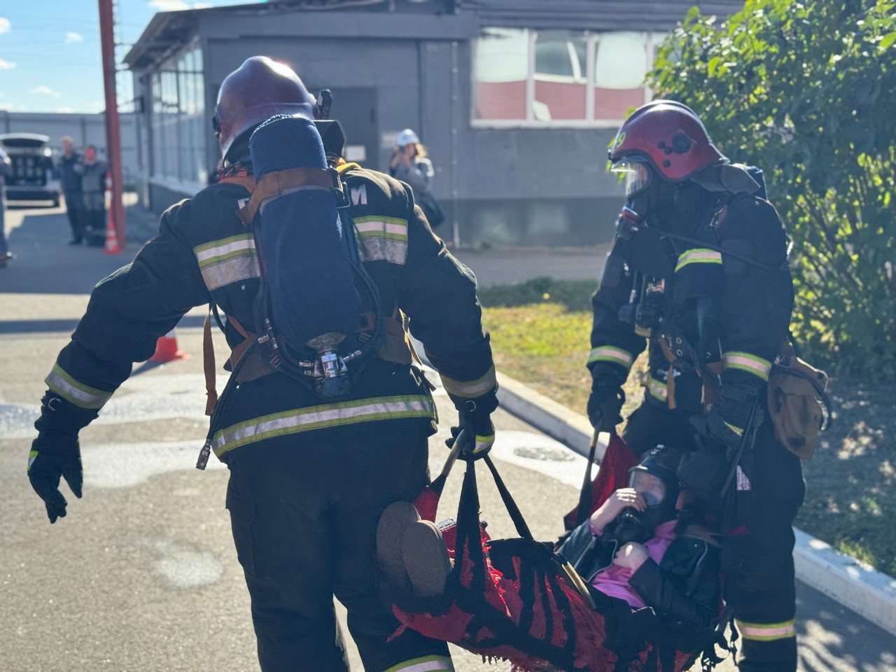 По тактическому замыслу на втором этаже административно-складского корпуса произошел пожар и на момент прибытия подразделений МЧС в помещении остались 2 человека. После сработки системы оповещения персонал предприятия эвакуировался из опасной зоны, пожарные оперативно ликвидировали очаг горения, спасли пострадавших и передали их представителям Красного креста для оказания первой помощи.