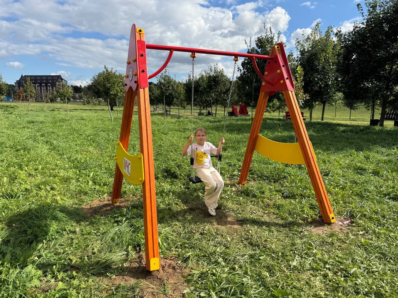 Дадзеная пляцоўка ўкамплектавана 7 гульнявымі элементамі для рабят рознага ўзросту. Акрамя гульнявога комплексу тут прадстаўлены арэлі, пясочніца, горка і балансір - усё выкананае ў адзіным выратавальным стылі.