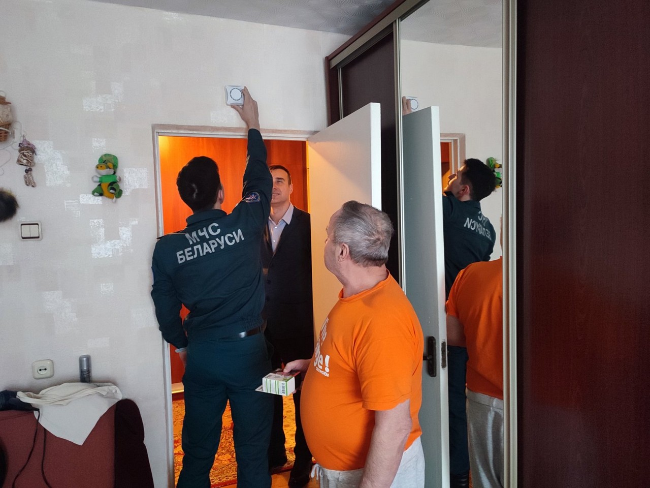 В рамках реализации плана Октябрьского района по стабилизации оперативной обстановки по пожарам работники Октябрьского районного отдела по чрезвычайным ситуациям совместно с работниками ОАО «Керамин» установили автономные пожарные извещатели в квартирах ветеранов предприятия.