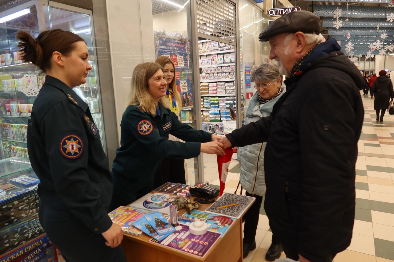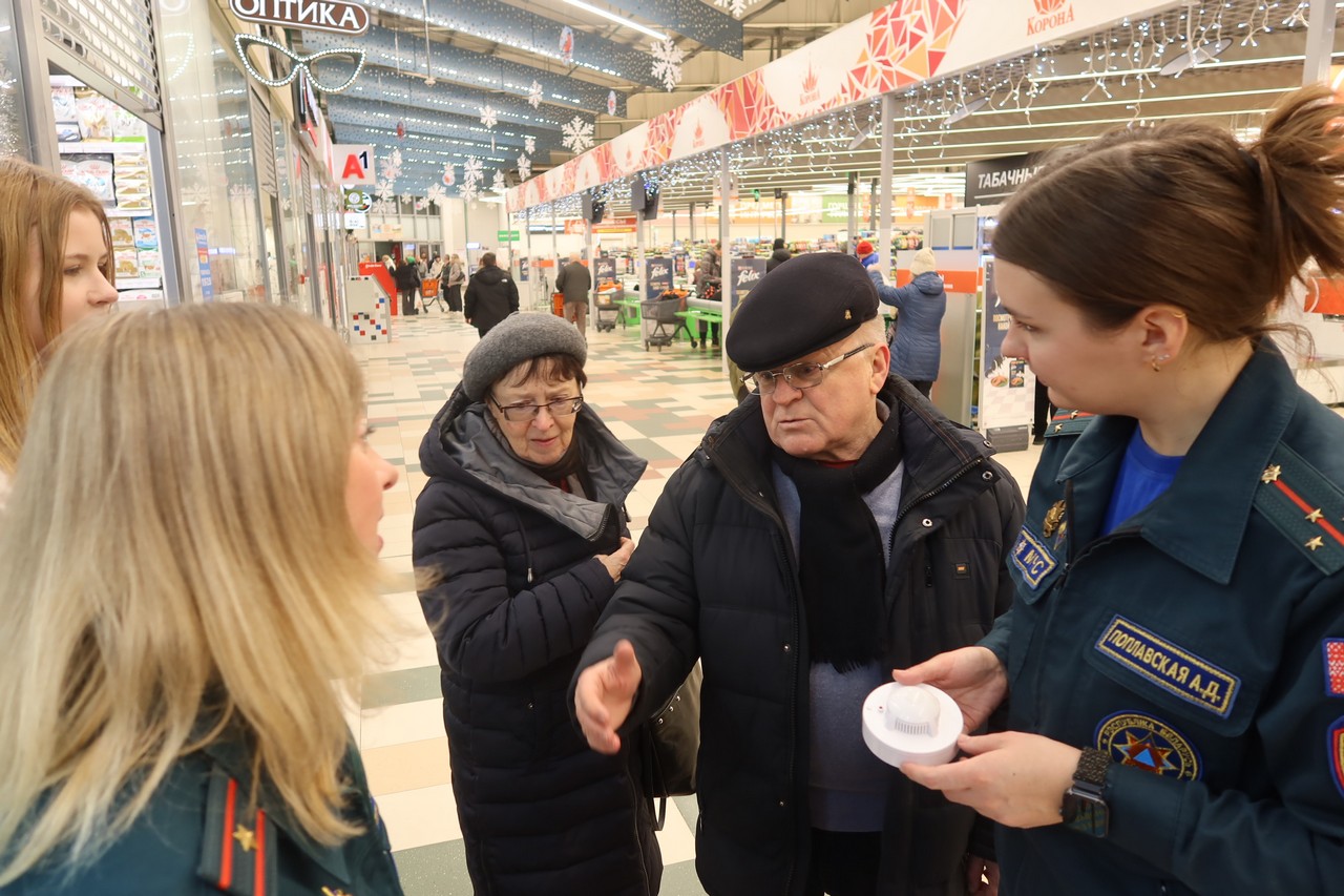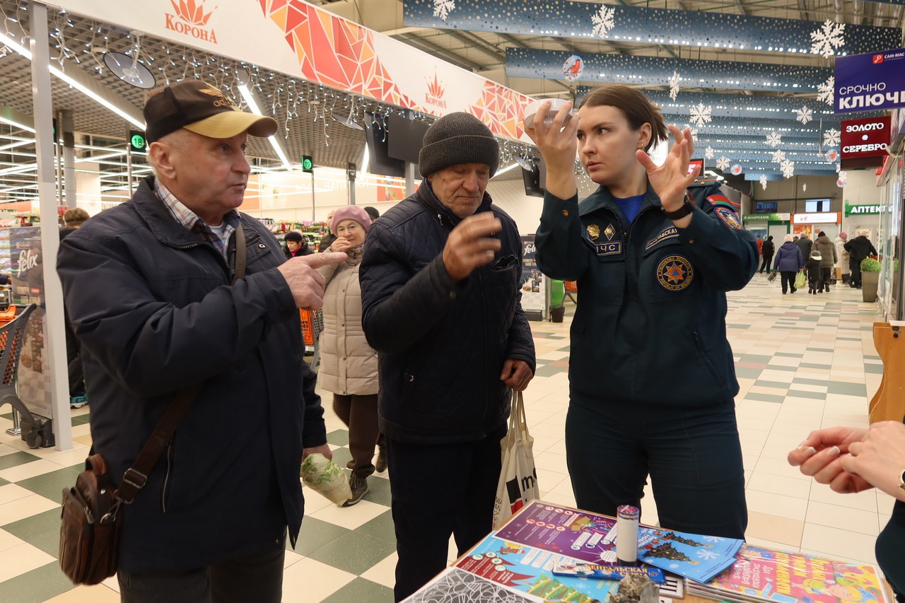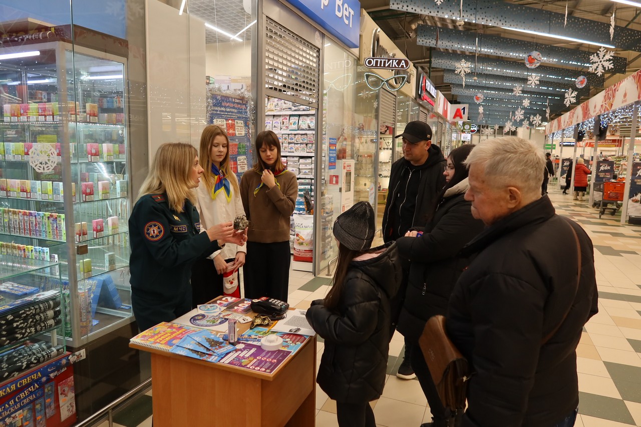 В рамках республиканской акции «Безопасный Новый год!» работники Октябрьского районного отдела по чрезвычайным ситуациям совместно с активистами Белорусской молодежной общественной организации спасателей-пожарных напомнили покупателям ТЦ «Корона-Курасовщина» о соблюдении правил безопасности в период новогодних праздников.