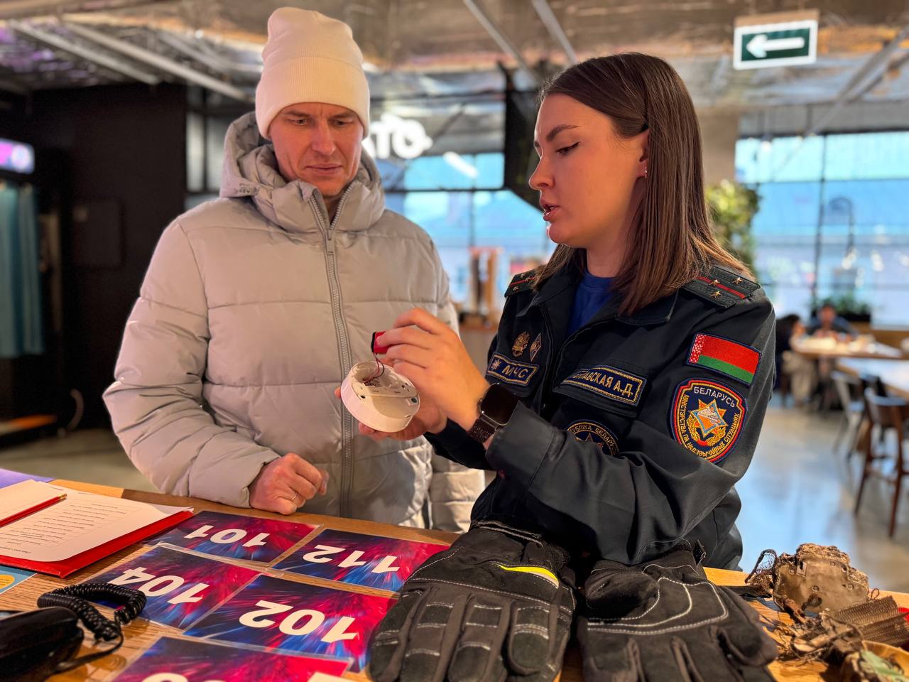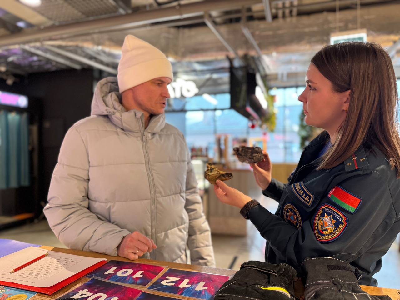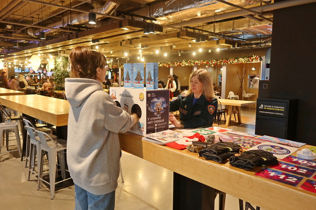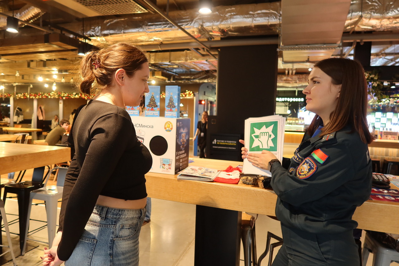 В рамках республиканской акции «Безопасный Новый год!» работники Октябрьского районного отдела по чрезвычайным ситуациям провели профилактическое мероприятие для гостей и жителей столицы в торгово-развлекательном центре «Галилео».