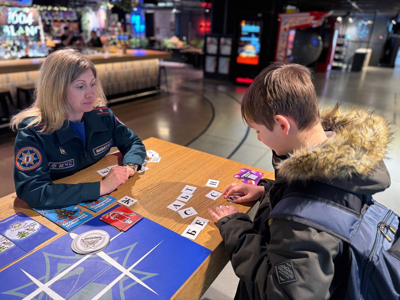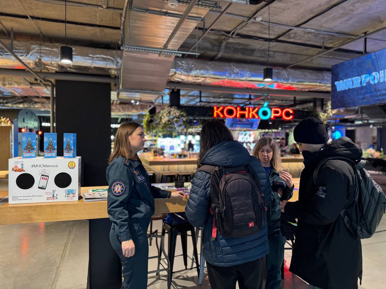 На интерактивной точке МЧС в фудмолле «Конкорс» посетителям торгового центра предложили освежить знания в области безопасности, поучаствовав в викторинах и интеллектуальных играх.