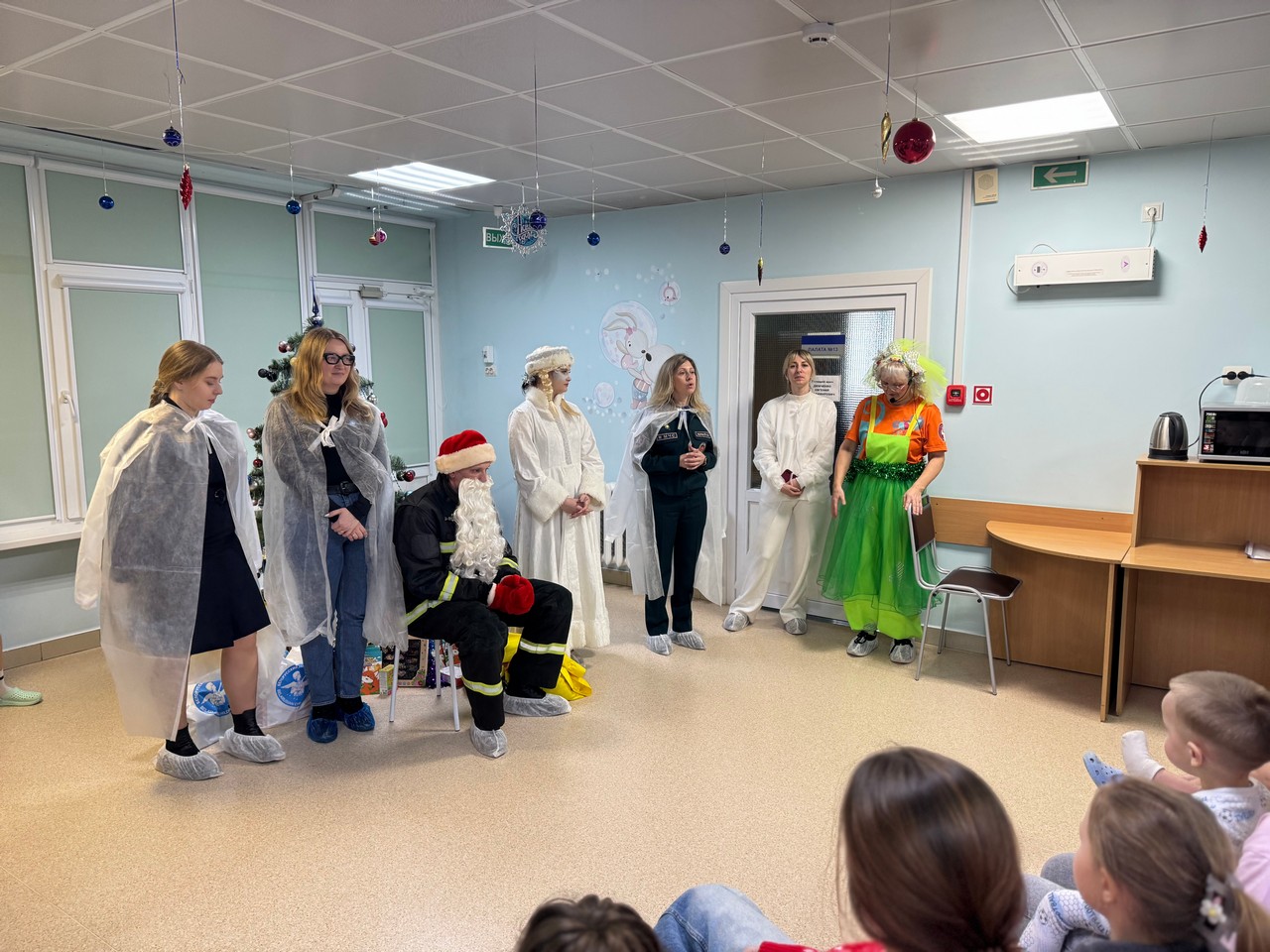 Ратавальнікі Кастрычніцкага раённага аддзела па надзвычайных сітуацыях наведалі з гасцямі пацыентаў дзіцячага апёкавага аддзялення Гарадской клінічнай бальніцы хуткай медыцынскай дапамогі.