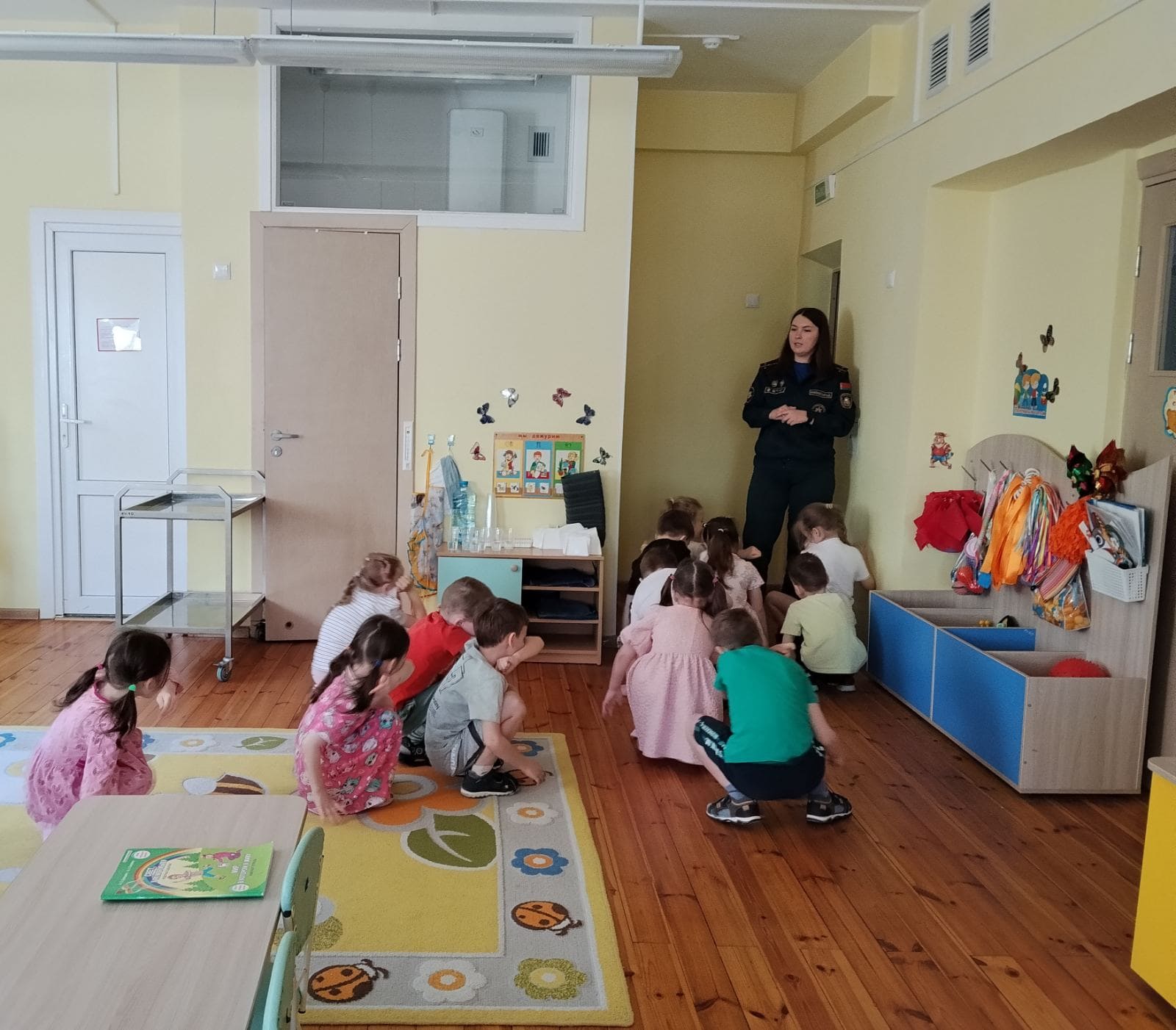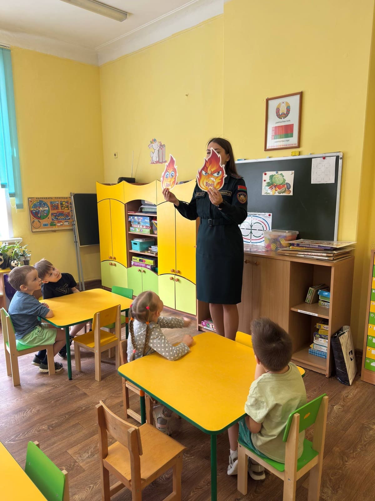 На пачатку заняткаў малыя разам з работнікам Міністэрства па надзвычайных сітуацыях у гульнявой форме вывучаюць правілы бяспечных паводзін дома і на вуліцы, вучацца правільна выклікаць ратавальнікаў і іншыя службы экстранай дапамогі горада, адрозніваюць, калі агонь – наш сябар, а калі – вораг, запамінаюць, што рабіць у выпадку пажару, а таксама замацоўваюць гэтыя дзеянні на практыцы. Нягледзячы на юны ўзрост, дзеці даволі хутка і, што самае важнае, правільна адказваюць на пытанні ратавальнікаў.