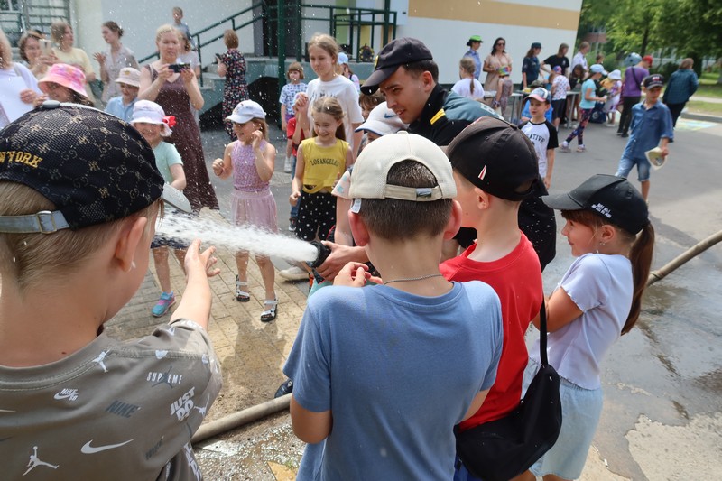 Подарком от спасателей для малышей стало знакомство с пожарной аварийно-спасательной техникой и оборудованием, и, конечно же, водная феерия.